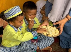 S prosazením pravidelného programu environmentální výchovy na školách v zálivu dlouhodobě těžce bojujeme, především kvůli nezájmu se strany učitelů. V minulém školním roce (2024–2025) se podařilo prosadit a realizovat zvolený program, tedy Education4Conservation, pouze v jedné škole ve vesnici Gersik. V červenci, na začátku nového školního roku (2025–2026), se tým GPTB pokusil získat další školy. Oslovili jsme školy ve třech vesnicích podél pobřeží zálivu. K programu Education4Conservation se takto připojily dvě nové školy (Jenebora a Pantai Lango), zatímco jedna další škola (Kampung Baru) se k programu přihlásila prostřednictvím sítě našich partnerů. Hned první měsíc se sice program zpozdil kvůli oslavám nezávislosti Indonésie, nakonec se ale s výukou přeci jen začalo. Nejmladší děti ve věku 4–5 let si při první aktivitě vyzkoušely poznávání přírody všemi pěti smysly. Pozorovaly rostliny, poslouchaly zvuků ptáků, žab a hmyzu, vnímaly vůni vdechovaného vzduchu a vůni ovoce a květiny. Dotýkaly se a ohmatávali texturu ovoce a listů a na závěr i ochutnaly čerstvé ovoce. Radost z toho, že přibylo několik nových škol, však byla vystřídána zklamáním poté, co se k aktivitám nepřidala jediná škola, která s námi spolupracovala v loňském akademickém roce. Učitelé ve škole v Gersiku svou neúčast omlouvají nabitým rozvrhem a jinými prioritami, především profesním školením v rámci vládního programu PPG. Prozatím nevíme, jestli se škola v Gersiku do programu Education4Conservation nakonec přeci jen zapojí, stejně tak ale není jisté, jestli v něm vytrvají i všechny tři nové školy.