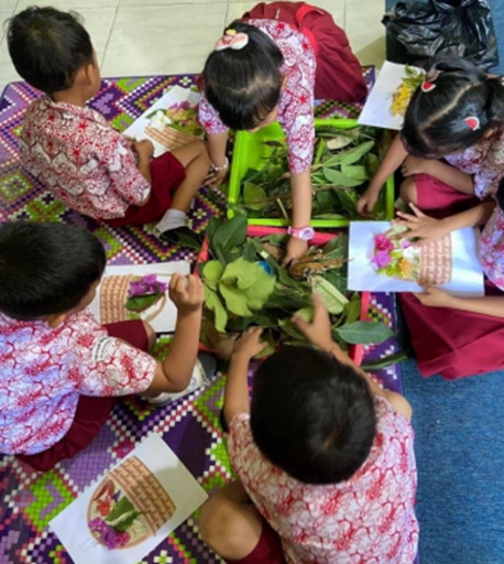 Spolupráce s novými školami je na začátku školního roku vždy nejistá. Jsme proto rádi, že program E4C zatím pokračuje ve všech nových školách, které se zapojily ve školním roce 2025/2026. Jsou to mateřské školy ve vesnicích Jenebora, Pantai Lango a Kampung Baru. Druhá výuková aktivita pro nejmladší děti se zaměřila na poznávání barev v přírodě v průběhu vycházky do okolí školy. Počínaje listy, které nemusí být vždy jen zelené, přes různobarevné květy až po nenápadně hnědé a šedé větvičky a kameny.