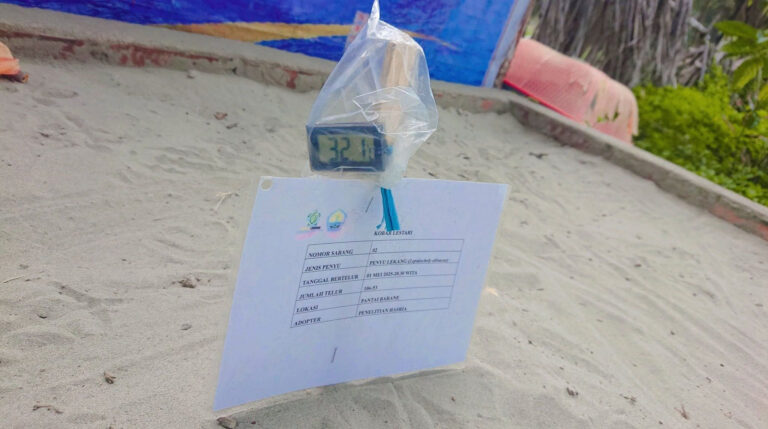 V oblasti Tompotika na východě ostrova Sulawesi je úspěšnost o poznání nižší, zajistit v dnešním světě ovlivněném klimatickou změnou správné podmínky pro líhnutí je věda, a proto tu s ochranáři Adéla letos v létě rozjela pokusy s teplotou. Měřili teplotu v obou chráněných částech pláže a zároveň i na pláži, aby mohli porovnat hatchery s přirozeným hnízdem na pláži. Nejčastěji naměřená teplota na všech místech se držela kolem 30 stupňů, to by nemělo mít fatální vliv na vývoj embrya, ale velmi pravděpodobně se nám z většího procenta na Sulawesi líhnou samičky. Bohužel jako na většině místech na světe. Zkusíme tu na další sezonu vymyslet částečné stínění, které by mohlo pomoct k ochlazení písku a snížení teploty…