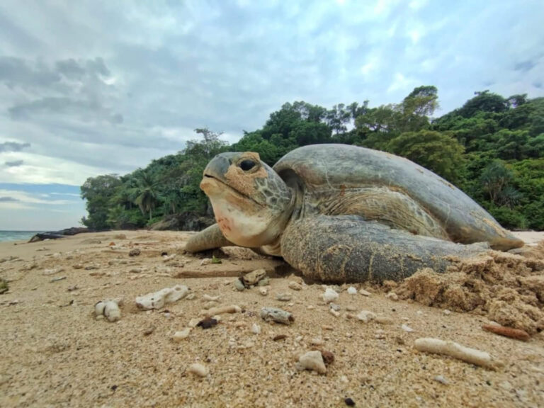 S odpady je v Indonésii problém všude. Kelímky, PETky, roztrhané zbytky rybářských sítí… to vše ohrožuje živočichy v moři i na souši… Želvu poraněnou lodí a další zamotanou do rybářské sítě zachraňovali v posledních třech měsících ochranáři na Sulawesi i na jižním Borneu. Jsem vděčná ochranářům, že i v hlavní sezoně, kdy jim na pláž klade vejce i více než deset samic denně, stíhají uklízet a hlídat pláž.